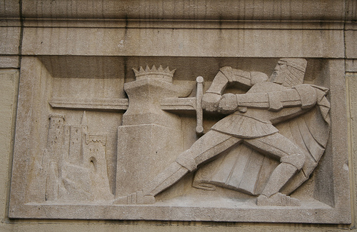 Lee Lawrie: reliefs of The Sword in the Stone and The Cow Jumped Over the Moon from the Children’s Courtyard