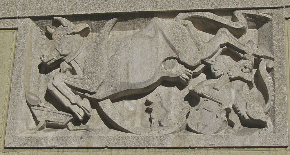 Lee Lawrie: relief on the tunnel level entrance to the Goodhue Building