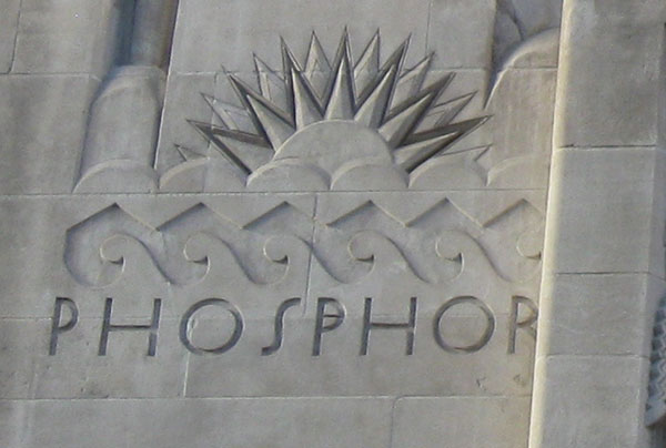 The play of interlocked surfaces has a pronounced Art Deco quality. With Phosphor and Hesper one can see evidence of the impulse that would come to full flower in Lawrie’s later work at Rockefeller Center. Everything appears modernized, in other words, flattened and self-consciously stylized. Decorative motifs like the rising and setting suns beneath the figures’ feet are executed in crisp, shallow relief and accompanying ocean waves abstracted to a classic volute pattern. In an adventurous touch, Lawrie set up a deliberate dissonance between the classic Roman lettering used in the quote from Lucretius and the lettering of the scrolls. The latter appears to be Plaza, a fashionable Deco typeface widely used in commercial signage during the 1920s. (Lawrie used the same lettering on a memorial plaque for Everett Perry located in the rotunda.)