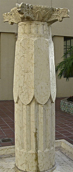 The East Wing was built around a courtyard accessed through the Children’s Department. It centered (as does its recreation today) on a lotus shaped marble fountain incised with low reliefs depicting royal mothers instructing their sons. The style of the carved reliefs is dense and delicate, resembling an illuminated manuscript or a drawing by Aubrey Beardsley.