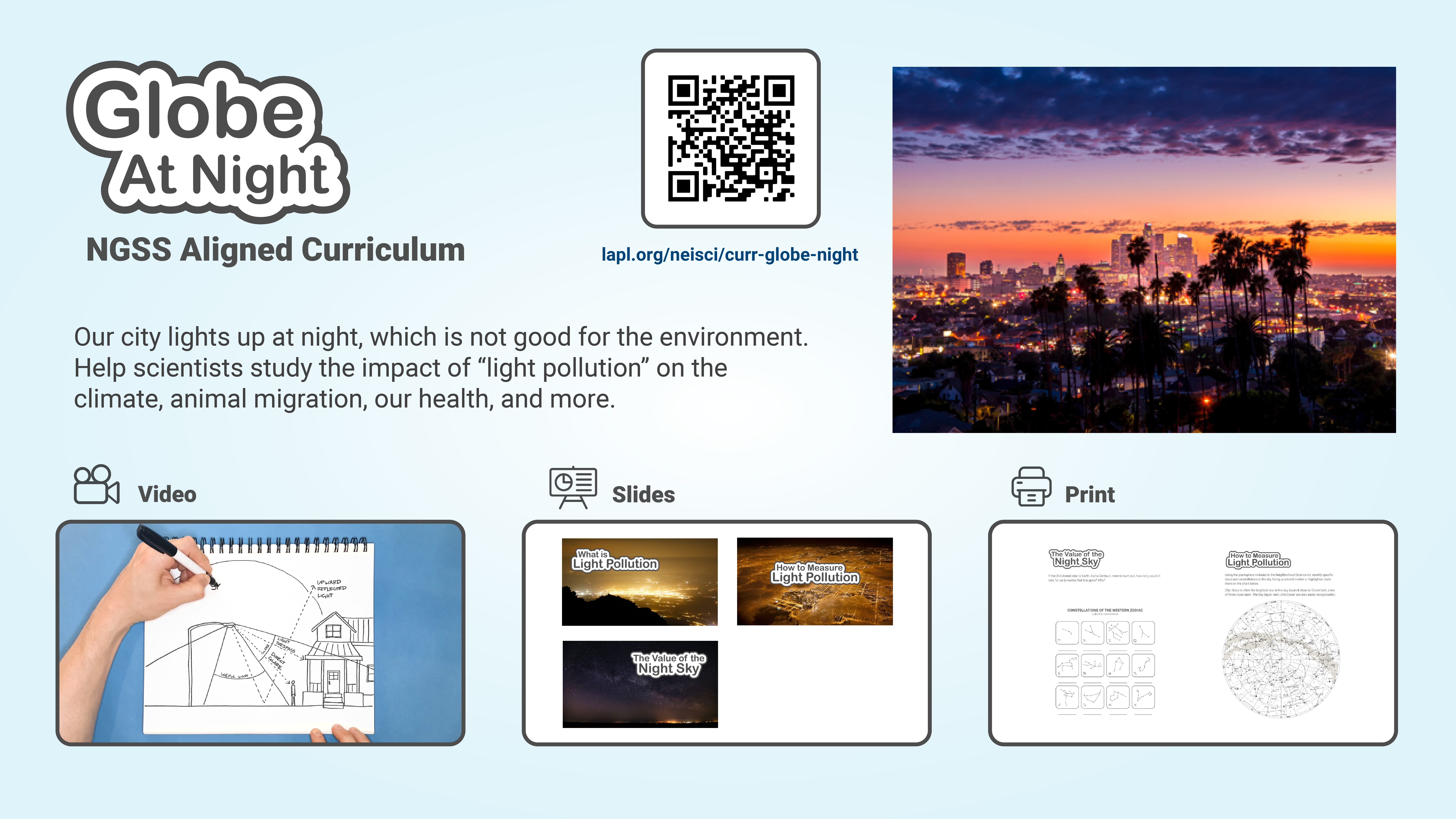 Our city lights up at night, which is not good for the environment. Help scientists study the impact of “light pollution” on the climate, animal migration, our health, and more.